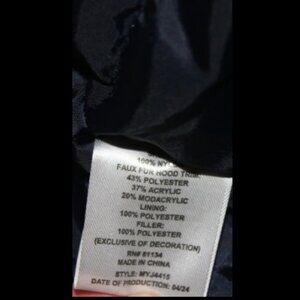New with tags. Has a zipper and buttons. Faux fur lining the hood. Some fleece on the interior.