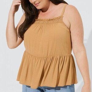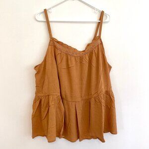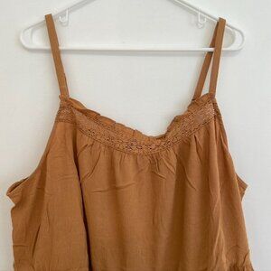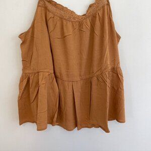 NEW NWT TORRID 3 Plus Size Crinkle Gauze Sleeveless Crochet Tank Tan Brown ish