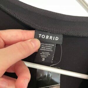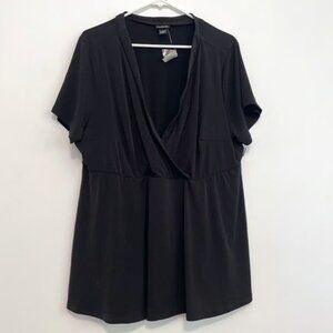 NEW NWT TORRID 3 Plus Size Jersey Knit Faux Wrap Top Black Short Sleeve NO BELT