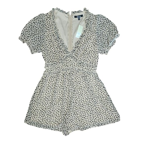 NEW NWT TRIXXI Francescas Tan Black Animal Print Romper Womens Size M Medium