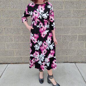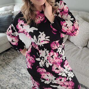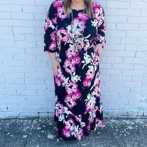 NEW NWT Tags LuLaRoe Evelyn Smocked Waist Maxi Dress Long Sleeve Black Floral