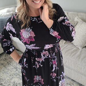 NEW NWT Tags LuLaRoe Evelyn Smocked Waist Maxi Dress Long Sleeve Black Floral