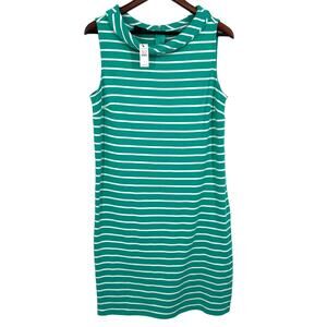 NEW NWT Talbots Size Large Green Stripe Dress Midi Beach Tropical Summer Pool