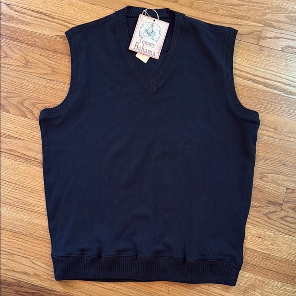 Elevate your style with this classic black sweater vest from Tommy Bahama. Perfect for layering, this versatile piece adds a touch of sophistication to any outfit.