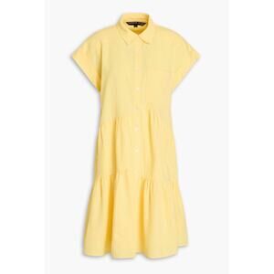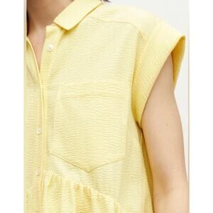 The Harrow dress is a decidedly feminine take on the classic shirtdress. With its capped sleeves, tiered silhouette and flounced hem, pale yellow denim dress is VB idea of the effortless weekend style. Contrast stitching and a patch pocket complete the look. Wear with flat sandals or sneakers during the day; switch to heels for night.