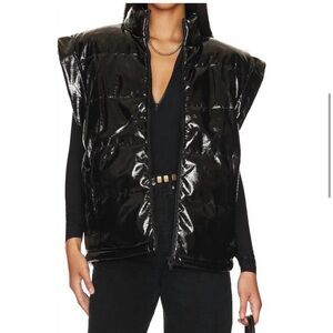 NEW NWT WE WORE WHAT shiny faux leather snap off sleeve puffer jacket in black