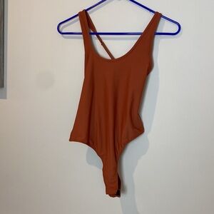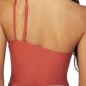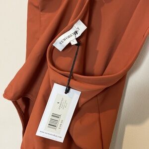 NEW NWT WEWOREWHAT Small asymmetrical bodysuit in clay (burnt orange/red clay)