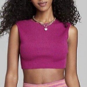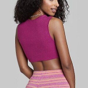 NEW NWT WILD FABLE Ribbed Twist Crop Top Magenta Pink Purple Cropped Y2K Tank