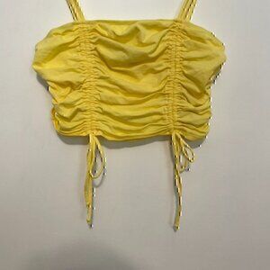 - NEW WITH TAGS Wild Fable - Yellow Ruched Smocked Crop Top with Ties