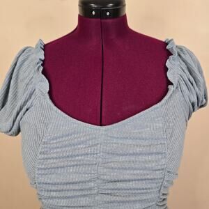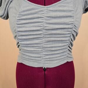 NEW WITH TAGS - women's Altar'd State ribbed, crop top in a bluish gray color. This top does stretch. The sleeves have elastic at the end.