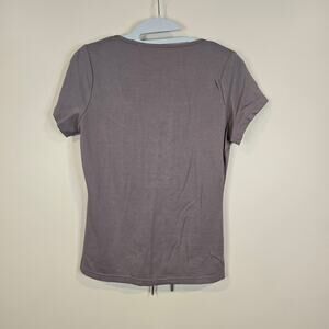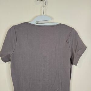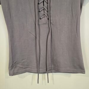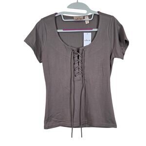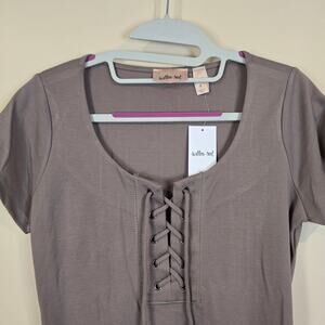 NEW WITH TAGS - women's Willow & Root gray/beige, lace up front, short sleeve tee. This top has minimal stretch.