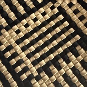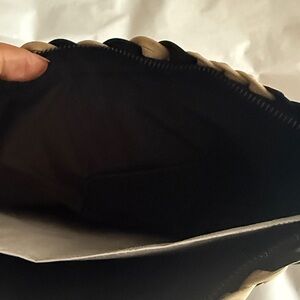 NEW Naghedi top zip Woven neoprene Black and Tan Pouch / Clutch. 10” x 7”