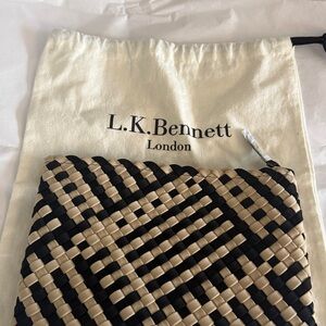 New Naghedi top zip clutch. Size 10” long by 7” tall. New unused. Woven neoprene. Pouch with Naghedi zip with logo .. comes in LK BENNETT pouch !