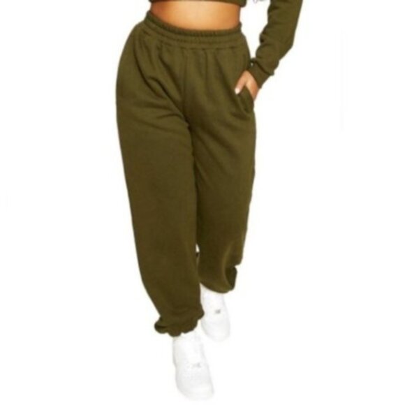 Keywords: sweatpants, olive green, cotton blend, military green, dark green, Naked Wardrobe, relaxed fit, elastic waistband, women's loungewear, XS size, functional pockets, casual style, comfortable, professional, versatile, green sweats