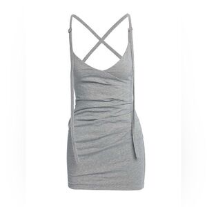 NEW Naked Wardrobe Heather Gray 100% COTTON Ruched Strap Mini Dress