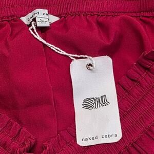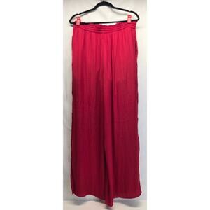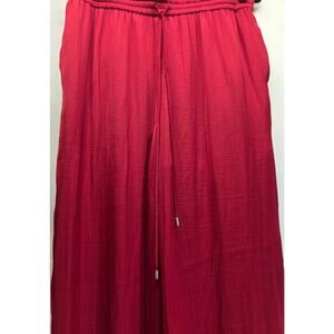 NEW Naked Zebra Red Silky Flowy Wide Leg Pants, Smocked Drawstring Waist, Large