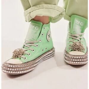 Nan-Ku Couture, Free People, Cruise, Studded, Converse, High Top Sneakers, Spring Mint, Light green, Bright Green, Pastel green, Neon green, Bohemian, Punk, Indie, Streetwear, Y2K, Festival, Rhinestones, Crystal, Metallic, Distressed, Lace-Up, Canvas