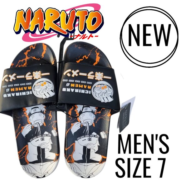 NEW Naruto Anime Ramen Men’s Size 7 Slippers Sandals Slides Shippuden Ichiraku Ramen Shop