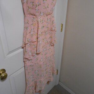 The Women's size 4 NASTY GAL COLLECTION Beautiful Sleeveless Layered Midi Dress in a pink floral color is a versatile and stylish option for various occasions. With a floral pattern, square neckline, and chiffon fabric, this dress features a hi-low design and a hidden side zip closure. Perfect for weddings, parties, casual outings, formal events, or business meetings, this dress is designed for the summer and spring seasons. The A-Line and maxi style adds a touch of elegance to this flattering dress from the Nasty Gal collection brand. Dress is lined to the bottom of the butt area and then sheer the rest of the length of the dress. Dress measures 17 inches across from armpit to armpit. A beautiful new Dress that comes to you just as pictured here. All my items are shipped the same day that payment is received from a clean, smoke free, home!