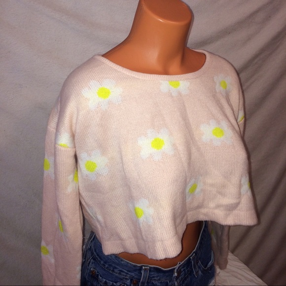 Brand new NastyGal thick knit sweater in cropped length with long sleeves. Really comfortable and easily keeps you warm! Light pink with yellow detail. Fell free to make offers! **Selling because of product not fitting, not due to fault in product**