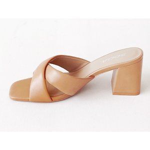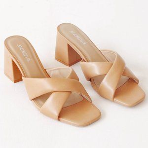 NEW Natural Tan Nude Twist Block Heel Slip Slide On Comfy Mule Sandal Shoes