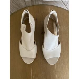 Color is bone faux leather upper back zipper round toe 1 1/2 stacked heel