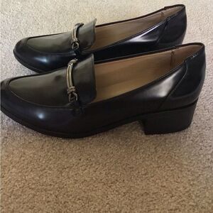 Elegant black faux leather loafers perfect for any occasion. Comfortable and stylish, these shoes are a must-have for your wardrobe.