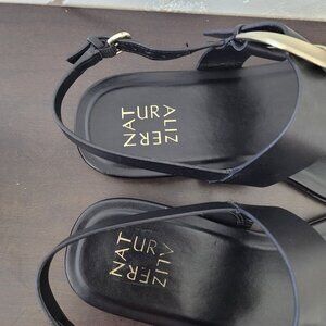 NEW Naturalizer Taylor Flat Sandals Black Leather 8W Ankle Strap