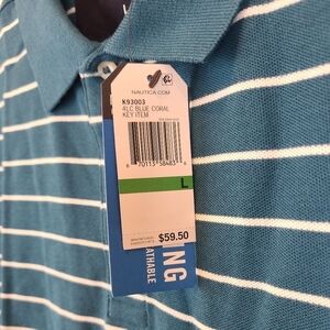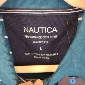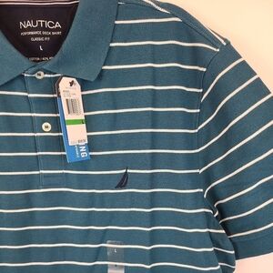 NEW Nautica Mens Classic Fit Striped Blue Coral Performance Deck Polo Sz L NWT
