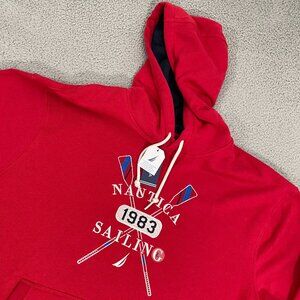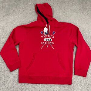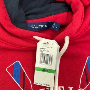 NEW Nautica Sailing Hoodie Men L Red Embroidered Pullover