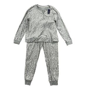 NEW Nautica Womens M Gray Star Print Pajama Set Long Sleeve Top & Jogger