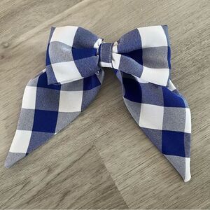 NEW Navy Blue Gingham Print Fabric Bow French Hair Barrette