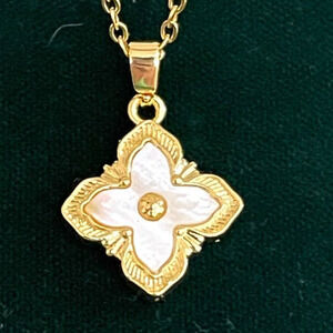 NEW Necklace 14k Gold Plate Luxury Flower Blossom MOP Clover 14" 16" 20" j15