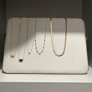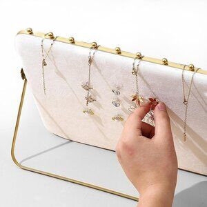 Size and Material: The outer frame of the necklace display stand is made of sturdy metal and covered with velvet padding, which can protect the necklace for a long time. The size is 9.64 * 13.97 inches.