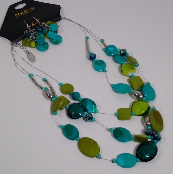 NEW Necklace Earring Set Jules B Silver Green Blue