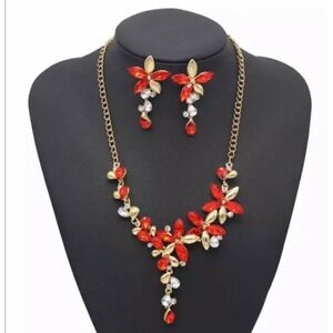 NEW Necklace Earrings Red Rhinestone Set Fashion Jewelry Choker 16" 18" 20" M25