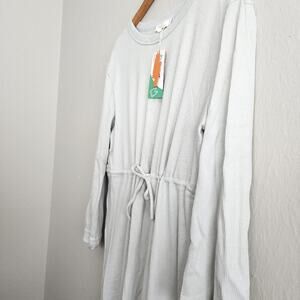 NEW Neiwai Ribbed Knit Drawstring Long Sleeve Dress Gray Violet