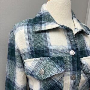 Your new favorite layer has arrived. Designed to keep you cozy on colder days ahead, this navy and green plaid shacket is the ultimate staple for when the weather just can't make up its mind. Soft brushed fabric.