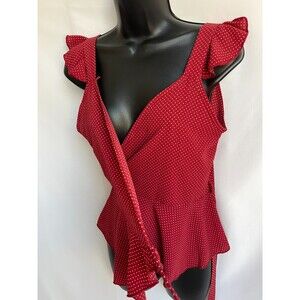 NEW New Made USA Red Wrap Blouse Size S Polka Dot Pinup Retro Flutter Sleeve