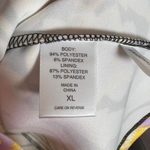 Unique floral design, Art Deco style. Sleeveless tank dress by NY & Company Stretch. Unlined, no pockets with hidden zip up the back for easy on & off. Black background with lilac, gold yellow, and white.