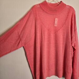 NEW New York & Company Wool Blend Semi Sheer Mock Neck Sweater Size XXL Pink