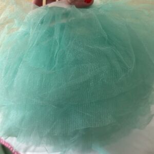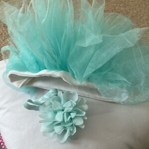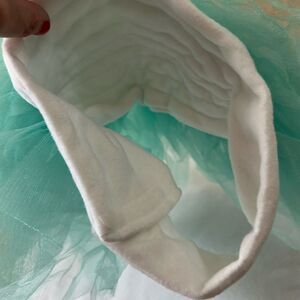 Super soft cotton that goes around baby with the tulle above. Beautiful detailing on the headband.
