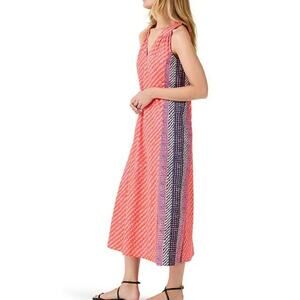 Nic+Zoe, Dress, Midi Dress, Sleeveless, A-line, Spotty Stripes, Abstract Print, V-neck, Geometric, Woven, Summer Dress, Sundress, Lightweight, Breathable, Cotton, Casual, Daytime, Vacation, Resort Wear, Coastal Grandma, Modern, Artsy, Statement Dress