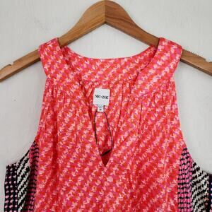 NEW Nic+Zoe Spotty Stripes Abstract Print V-Neck Sleeveless A-line Midi Dress