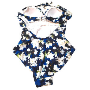 NEW Nicole Miller Floral Ruffle Convertible Bandeau One Piece Swimsuit
