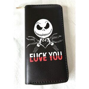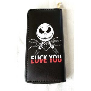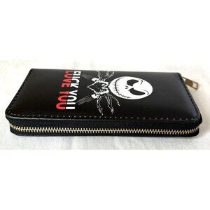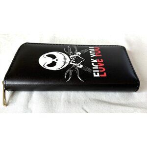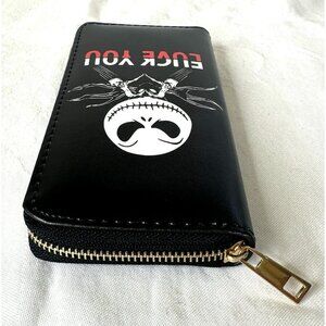 NEW! Nightmare Before Christmas Faux Leather Wallet Gold-Tone Zipper. Inner Space is lined and contains Black Zippered Coin Pocket, Dollars Slot and Credit Card Slots. Gift. Measures approximately 7.5 x 4 x 1 inches.