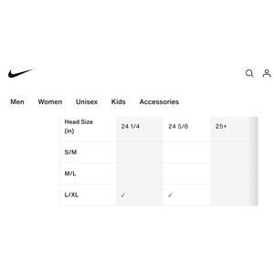 Nike Adjustable cap size chart (in photos) indicates a size L/XL fits head circumference of 22 5/8 inches-24 5/8 inches. When I measured as comes from factory (unadjusted), measured at 24 inches.