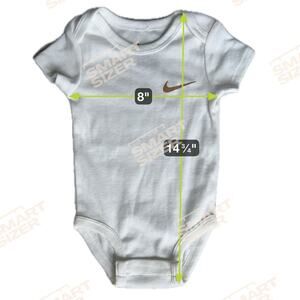 NEW Nike Baby One Piece Bodysuit 6M 62-68cm White w Gold/Tan Swoosh Snap Bottom