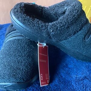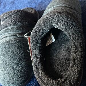 New black Nike burrows slippers great for the cold weather and as inside shoes. With a functional zipper and mini pocket in front to put any random thing.