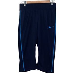 NEW Nike Dri Fit Wide Leg Capri Leggings - Navy w/ Teal Stripe - Size Small